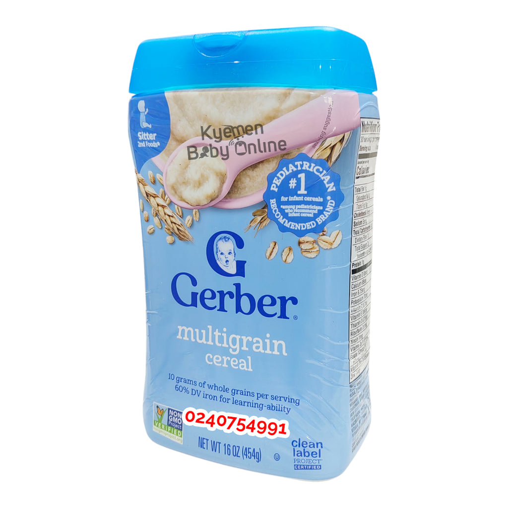 Enjoy the nutritional benefits of Gerber Multigrain Cereal (2nd Foods). Made with whole grains, this cereal provides 45% of your baby's daily iron intake and is a great source of essential vitamins and minerals. With a smooth texture and mild flavor, it's the perfect first food for your little one.