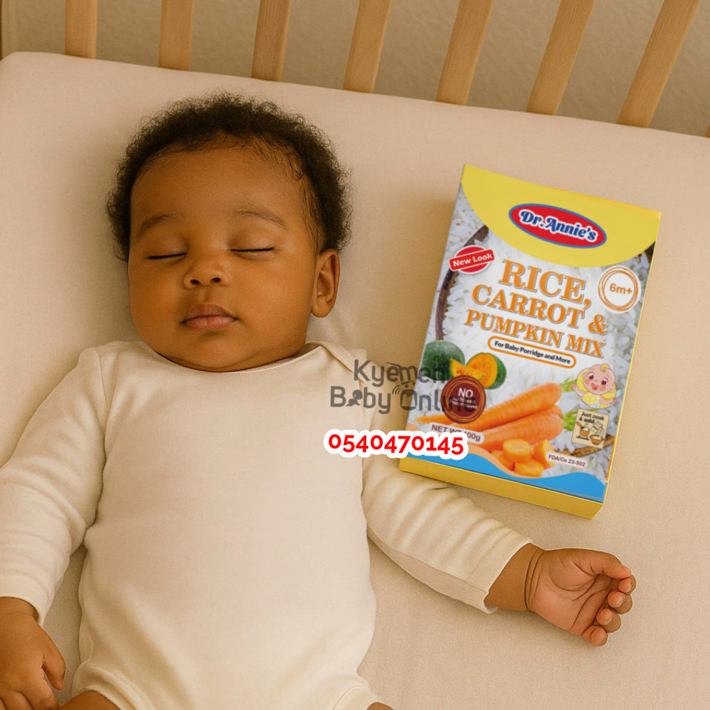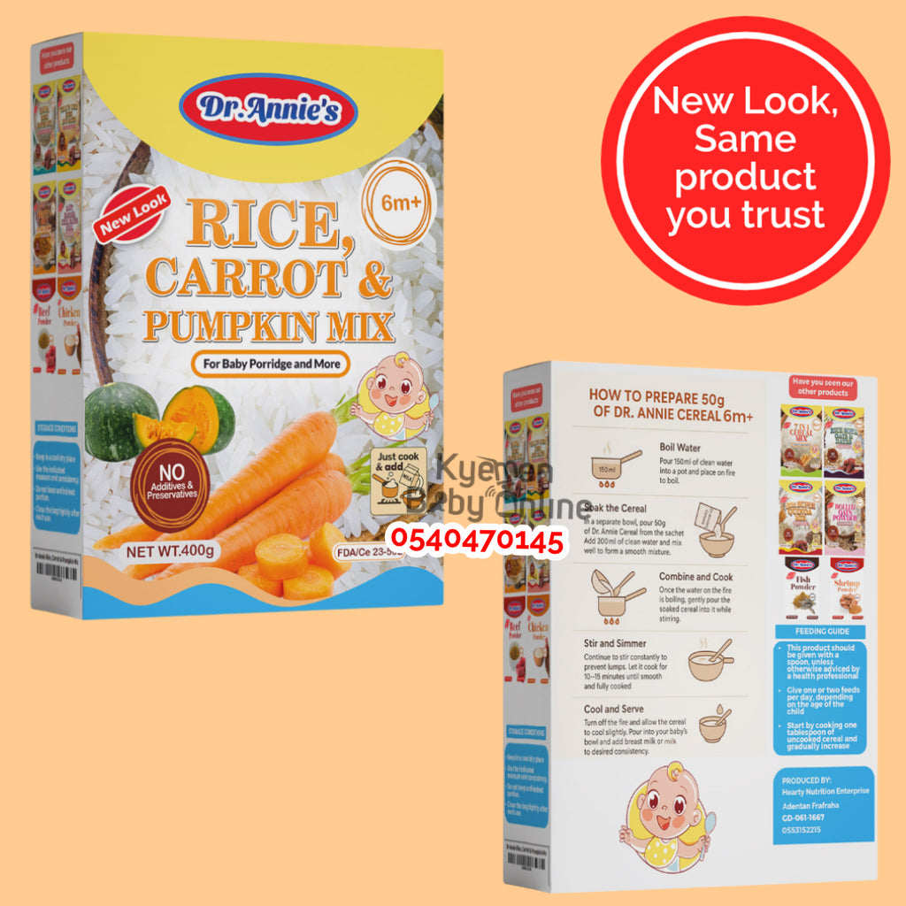 This rice, carrot, and pumpkin mix by Dr Annie's is perfect for babies 6 months and older. Made with natural ingredients, this 500g pack is a nutritious and delicious meal option for your little one. Support your child's development with this tasty blend of vegetables and rice.