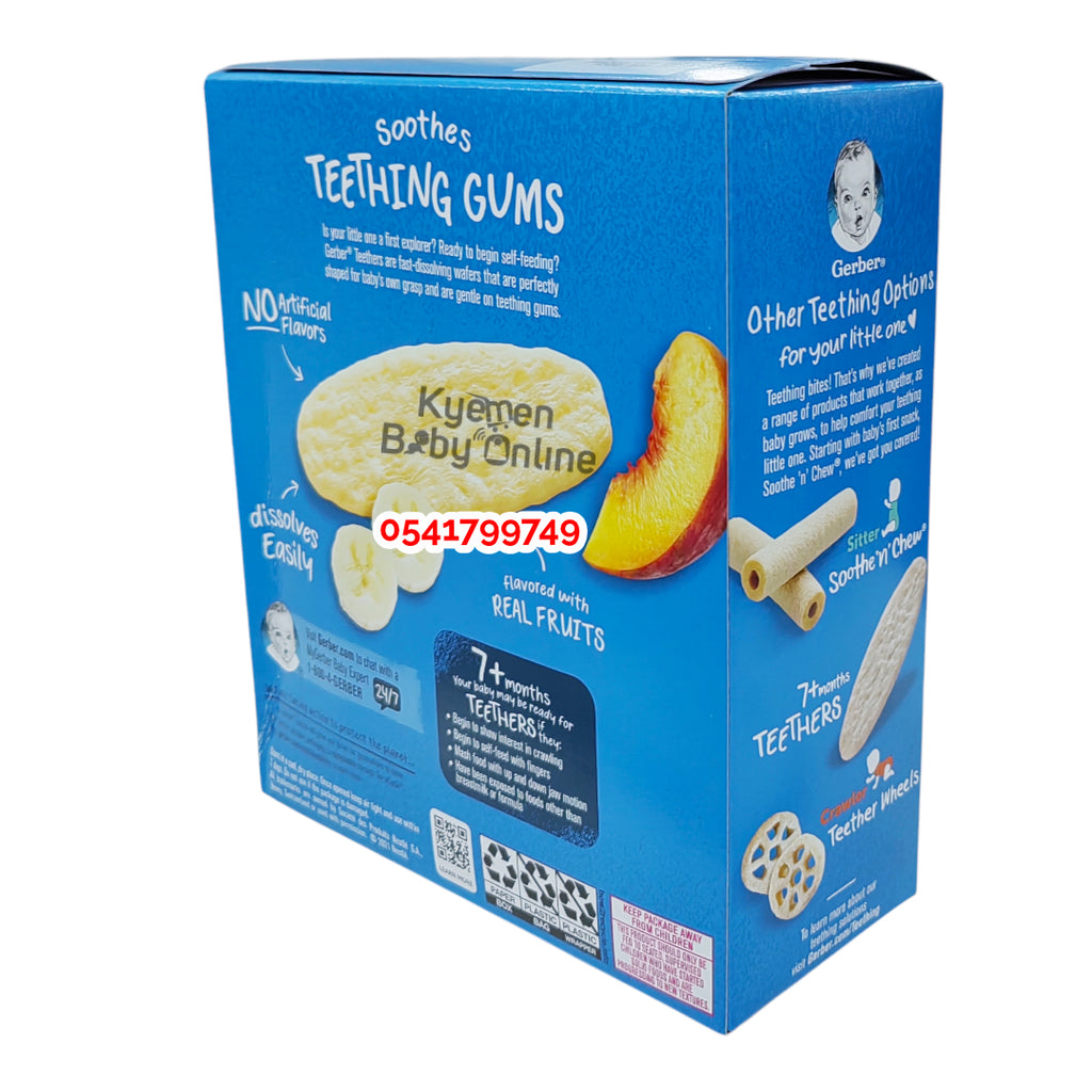 Experience a delicious and nutritious snack with Gerber Teethers Biscuit (Banana & Peach) for babies 7 months and up. Made with real fruit, these biscuits provide essential vitamins and minerals while soothing teething pains. Enjoy the benefits of a happy and healthy baby with Gerber Teethers Biscuit.