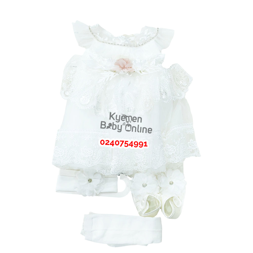 This baby girl christening dress is perfect for your child's special day. With a delicate and elegant design, it is made to complement and enhance your baby's natural beauty. Made with high-quality materials, this dress is both comfortable and stylish. Give your little one a memorable christening with this beautiful dress.