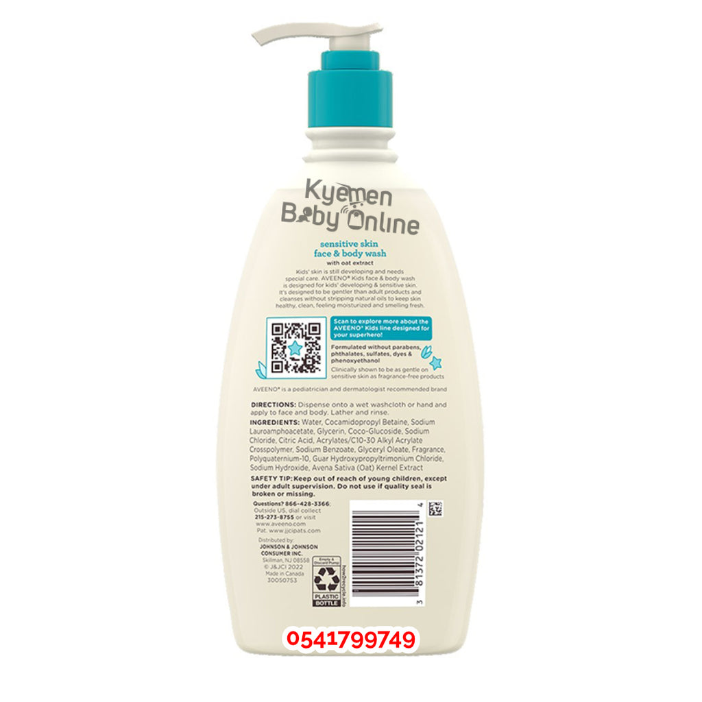 Gentle and safe, Aveeno Kids Face And Body Wash with oat extract cleanses and nourishes delicate skin. Formulated by experts, this wash is perfect for keeping your child's skin hydrated and healthy.