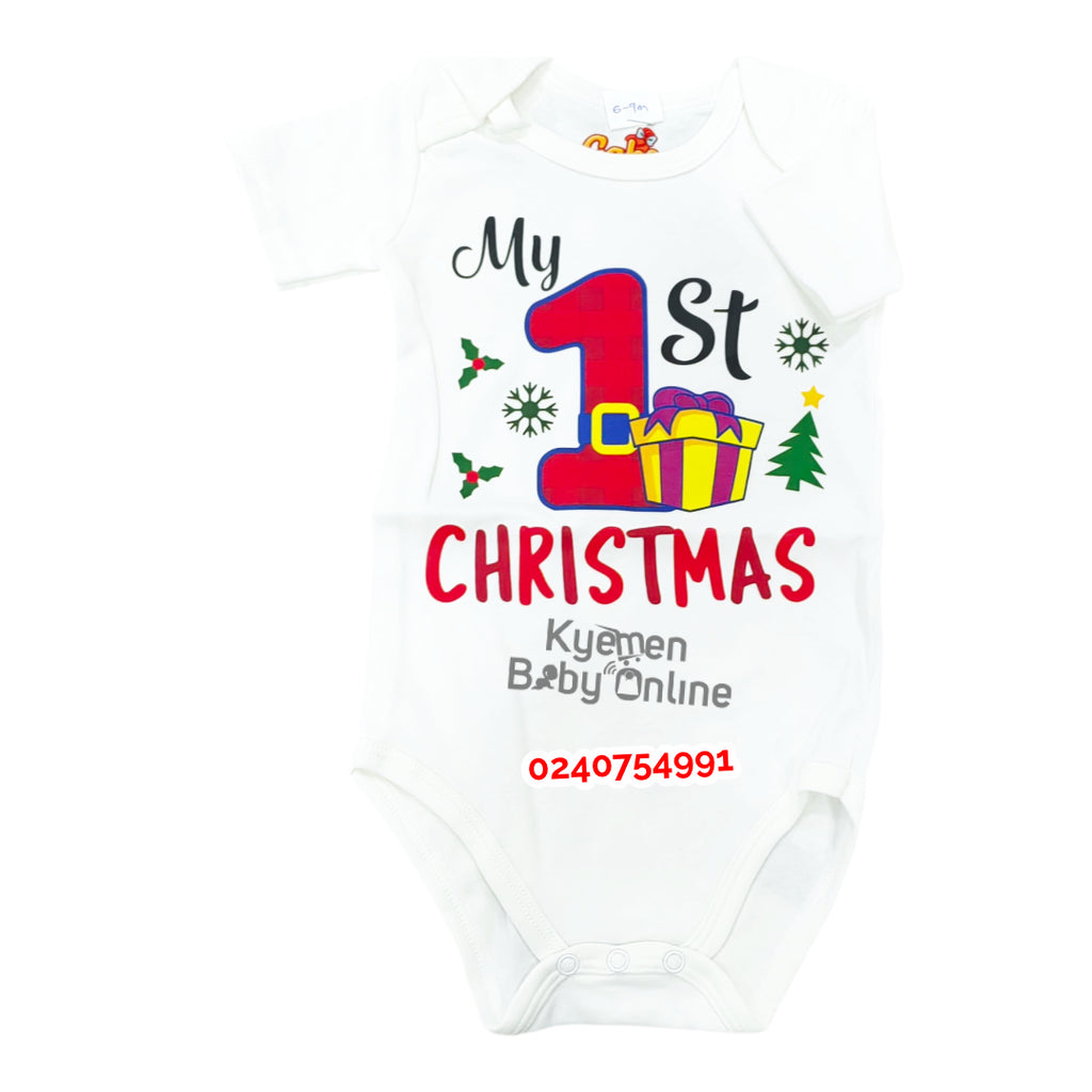 Celebrate your little one's first Christmas with our Baby Bodysuit! Made with soft and comfortable fabric, your baby will stay cozy all holiday season. The adorable design will make for perfect holiday photos and memories. Keep your little one festive and stylish this holiday season.