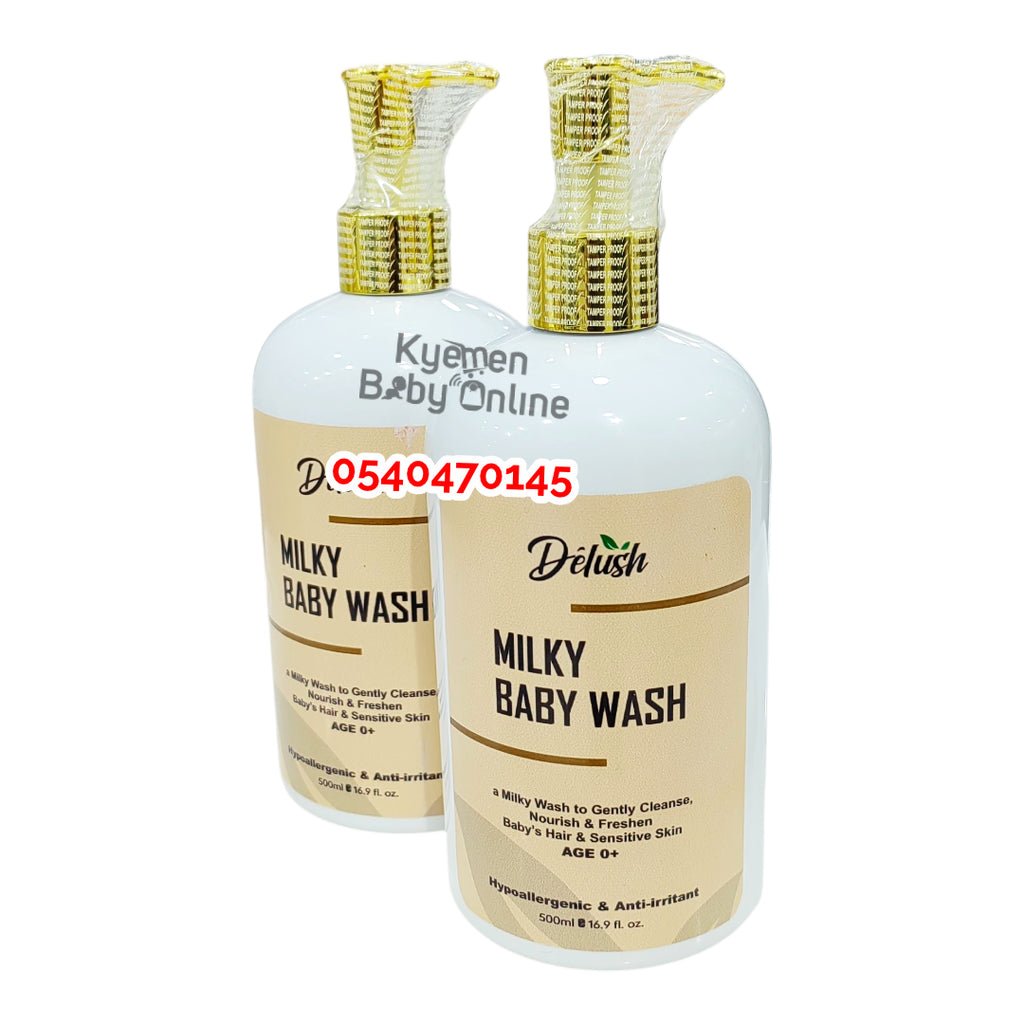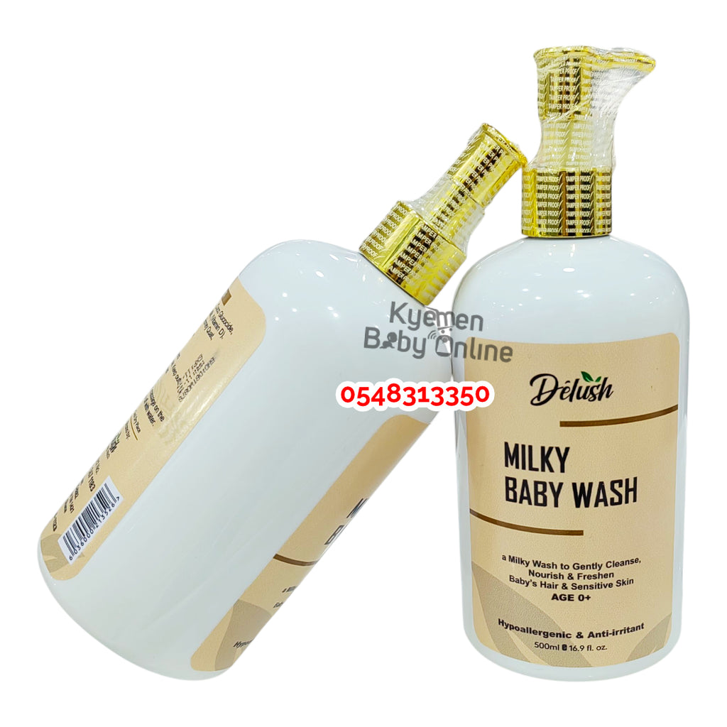Cleanse and nourish your baby's delicate skin with Baby Milky Wash by Delush. This gentle and hypoallergenic wash uses natural ingredients to keep your baby's skin soft and moisturized. The 500ml/16.9oz bottle ensures a lasting supply for your little one's bath time routine. Trusted by parents and recommended by experts.